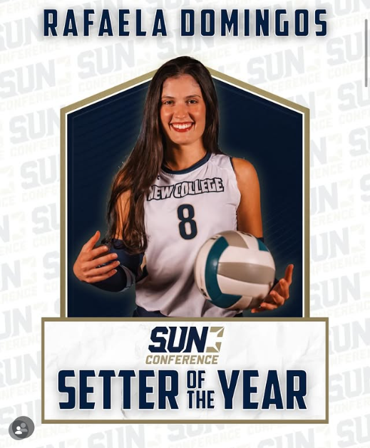 Parabéns, Rafaela Domingos! Nossa senior da New College of Florida foi eleita Setter of the Year da Sun Conference! Em 2025, Rafaela também se destacou diversas vezes como Jogadora da Semana pela conferência, mostrando talento, dedicação e liderança dentro de quadra. Seu esforço e paixão pelo vôlei brilham a cada partida! Avante!