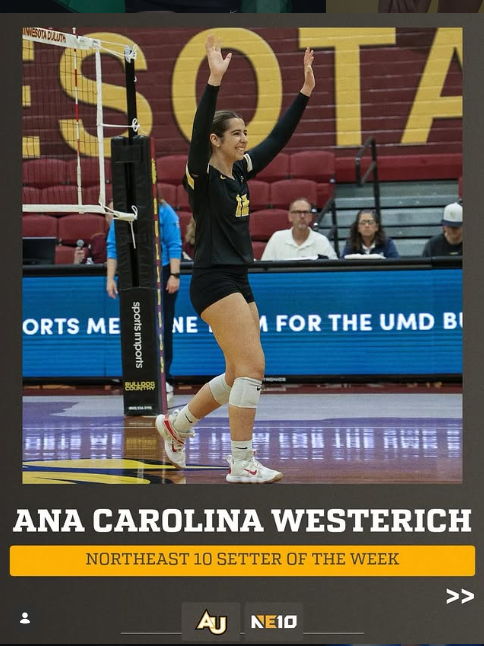 Ana Carolina Westerich, levantadora da Adelphi University, foi eleita Setter of the Week pela Northeast-10 Conference (NE10).
