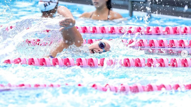 Na natação, os times entram na campanha de conscientização do câncer de mama de um jeito especial: atletas competem com toucas rosa, aquecem usando camisetas temáticas e muitas universidades organizam os famosos pink meets, onde toda a equipe veste algum item rosa em apoio à causa.